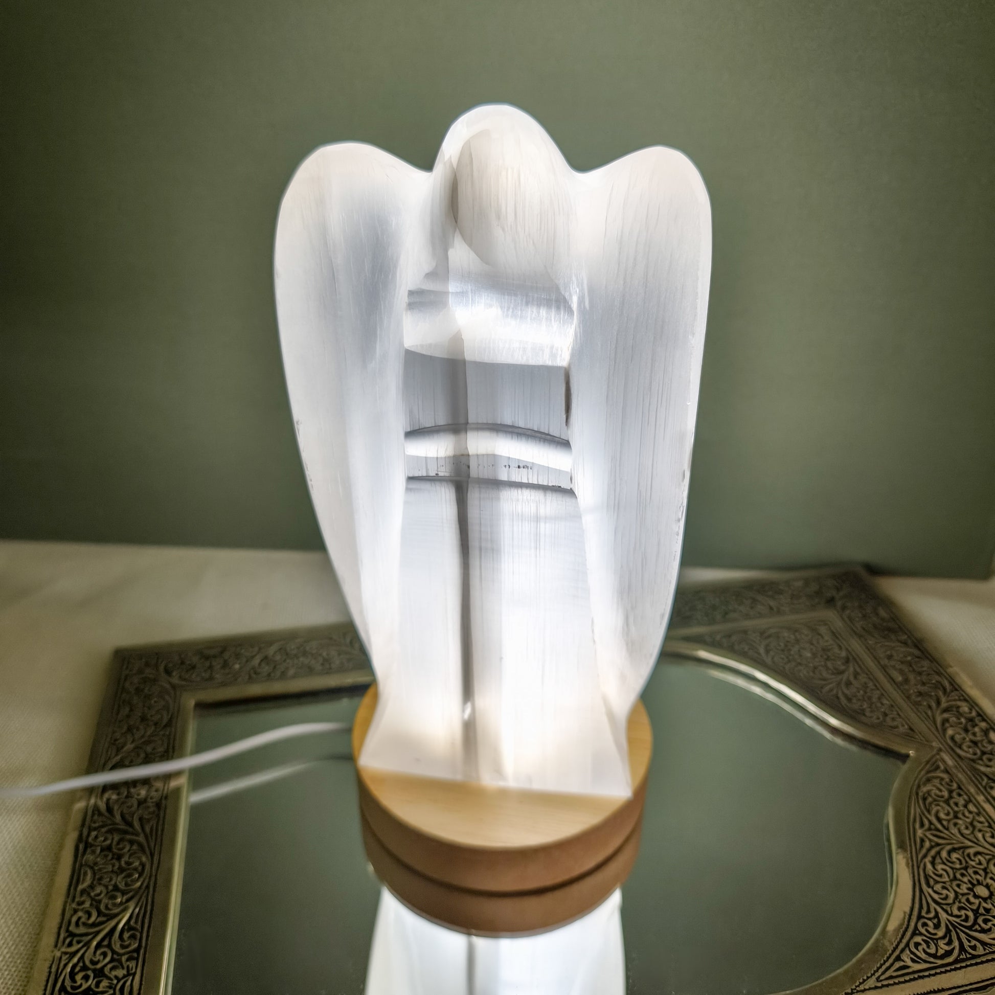 Handmade Selenite Angel Lamp 20cm + LED Base.